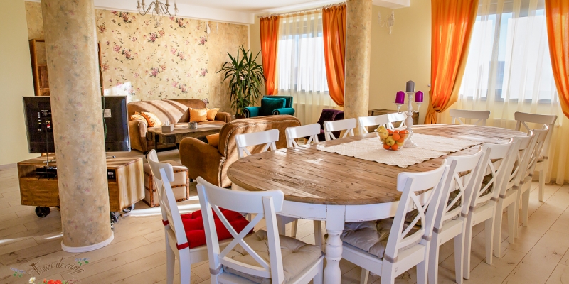 Te vei putea bucura de odihna in camere elegante și primitoare, intr-o pensiune decorata in stil country, cu tema florala.