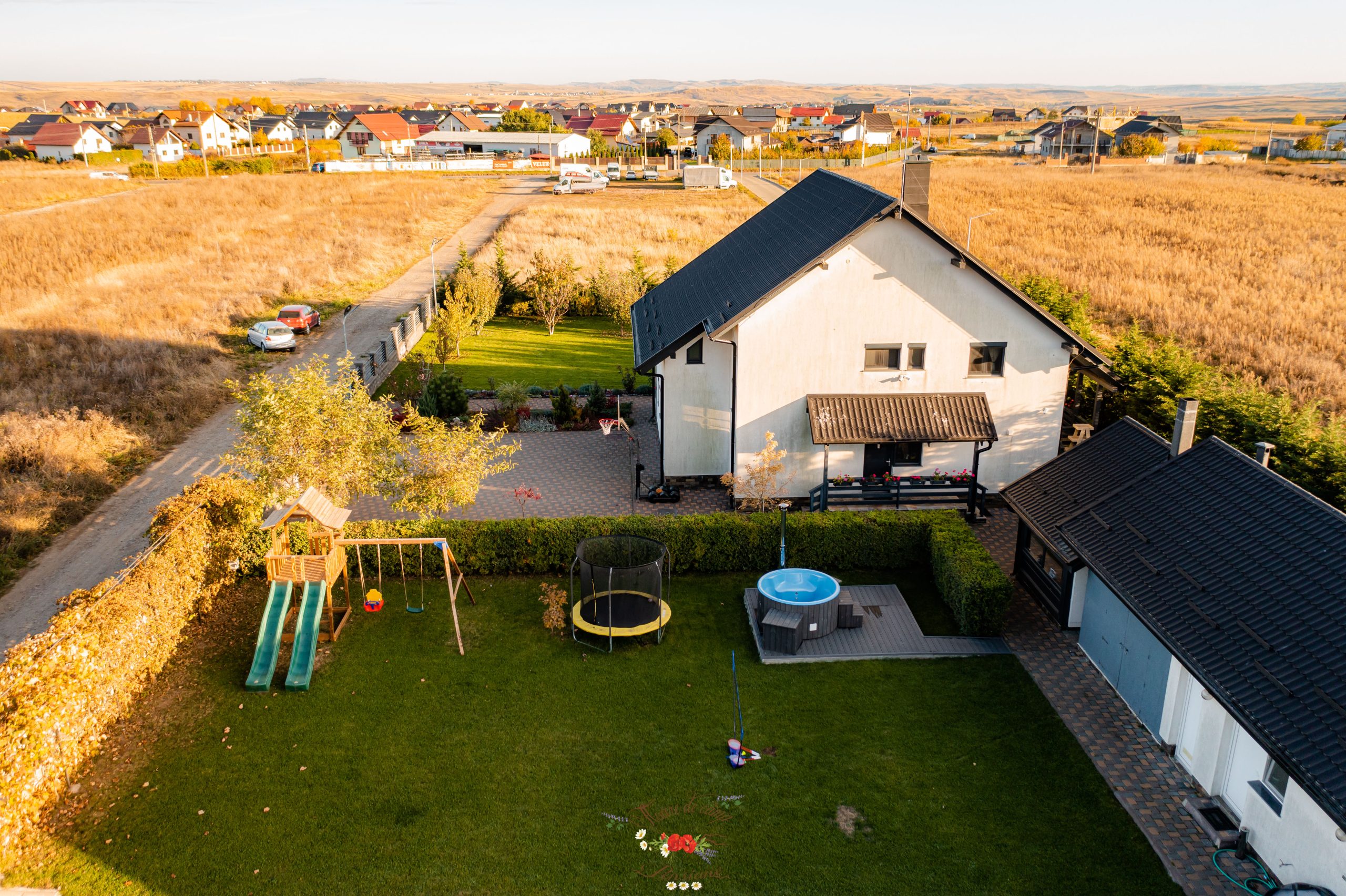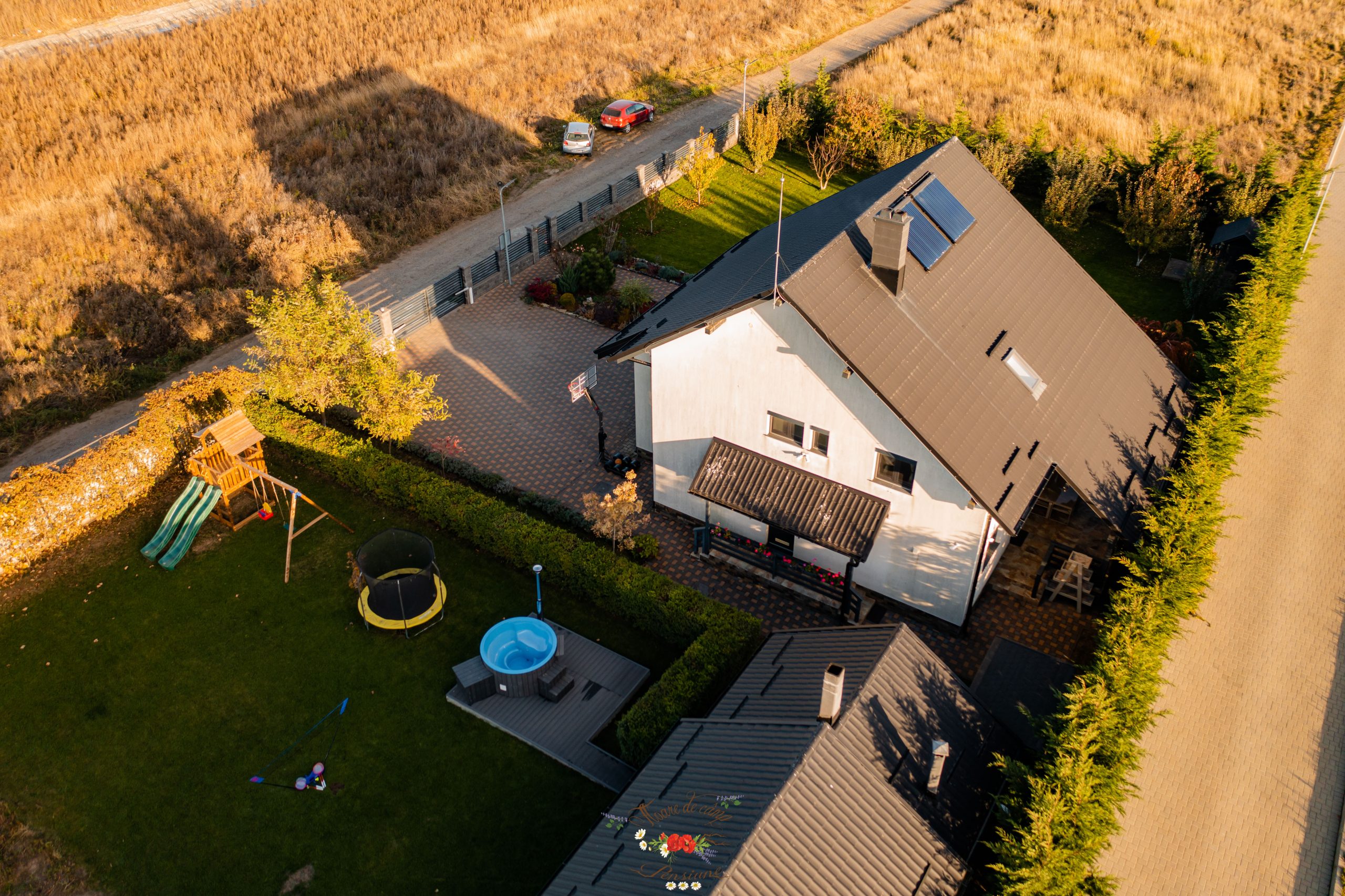 📌Zona de relaxare: terasa si un foisor inchis cu gratar, rotisor, ceaun, plita, afumatoare si cuptor cu lemne,cos de baschet, loc de joaca pentru copii (2 tobogane, 2 leagane), trambulina, badminton, ciubar din fibra de sticla (apa incalzita, lumini ambientale, aeromasaj), biliard, darts.